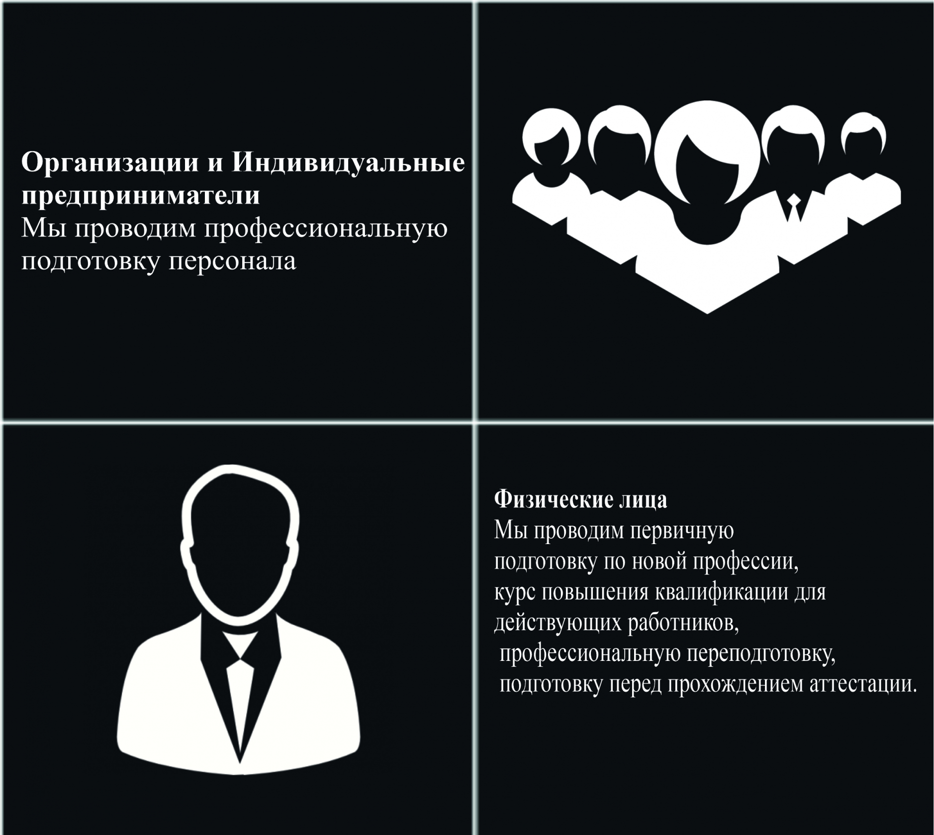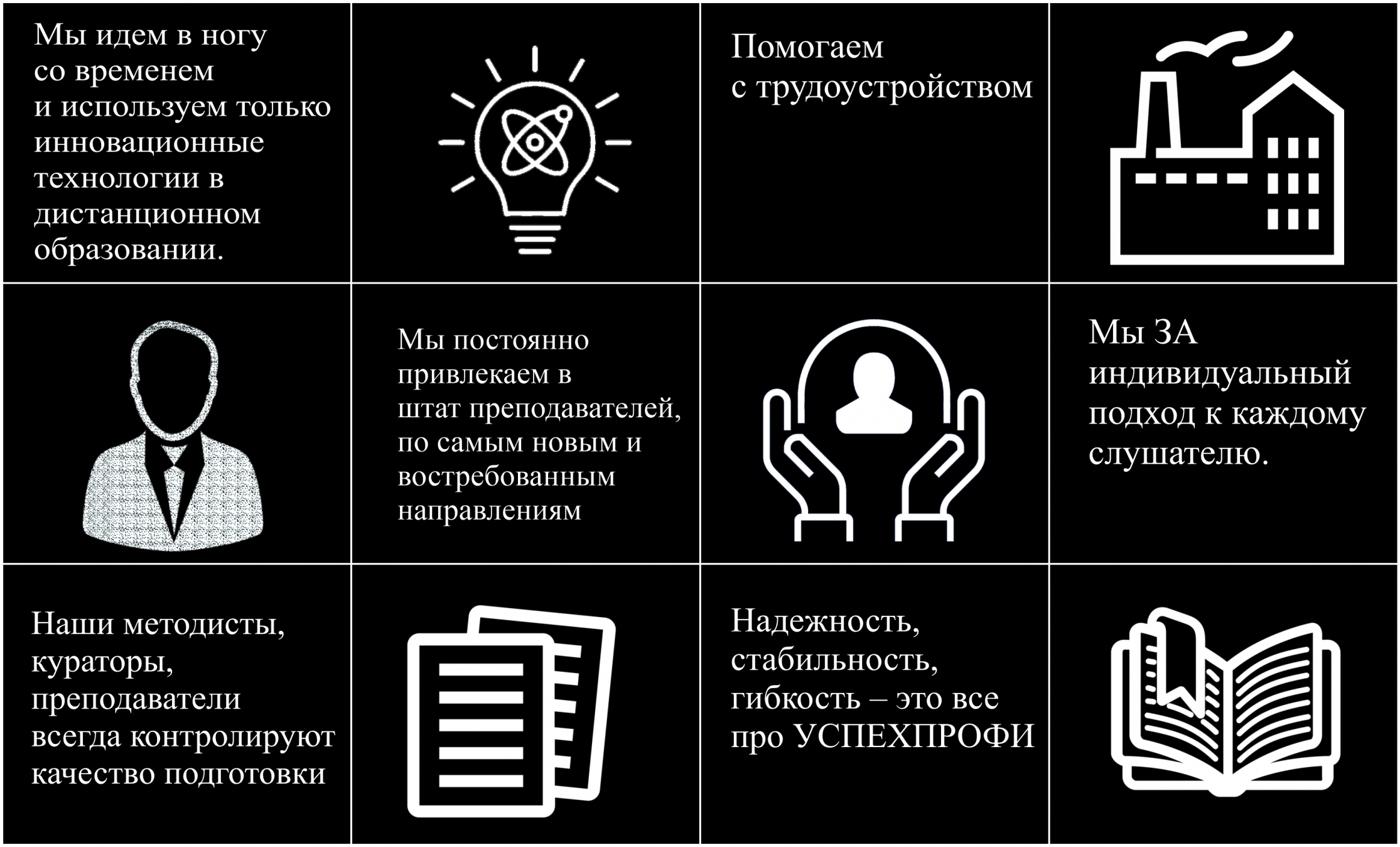 Общество с ограниченной ответственностью "УСПЕХПРОФИ" – оказывает услуги по повышению квалификации и профессиональной переподготовке кадров, обучает рабочим профессиям, проводят аттестацию руководителей, специалистов и работников организаций в области охраны труда, промышленной, пожарной и экологической безопасности с выдачей соответствующих подтверждающих документов установленного образца.